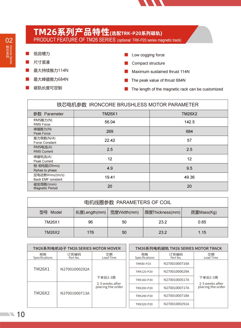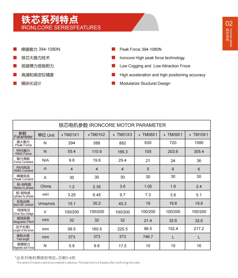 鐵芯直線電機參數IRON CORE MOTOR PARAMETER
