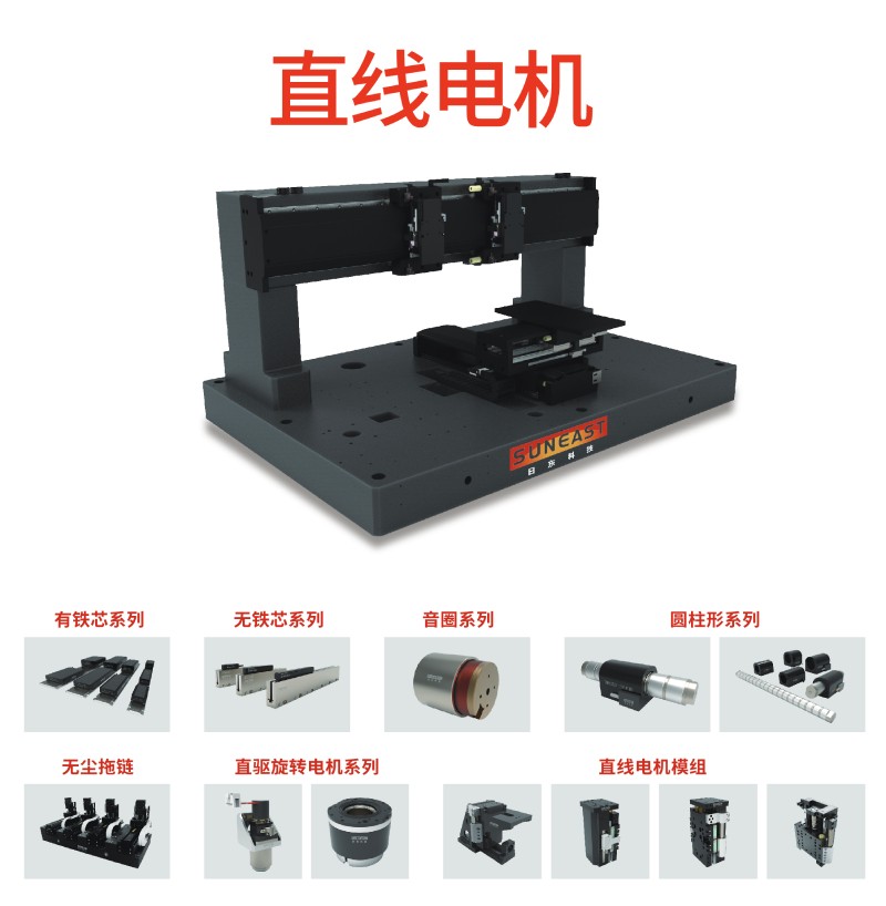 日東科技自主研發(fā)的直線電機產(chǎn)品系列,集高精度(100納米重復(fù)定位精度)、高響應(yīng)速度、高穩(wěn)定性及可靠性等優(yōu)點,廣泛應(yīng)用于各行業(yè)精密場合,如視覺檢測、光學(xué)校準(zhǔn)對位、激光加工、工業(yè)機器人、精密機床等。產(chǎn)品采用光柵尺或磁柵等無接觸位置編碼器精準(zhǔn)定位,可實現(xiàn)單軸、多軸聯(lián)動,龍門同步等快速靈活的驅(qū)動控制,維護方便,使用壽命長,同時緊湊的模塊化設(shè)計節(jié)省了安裝空間,易于擴展。