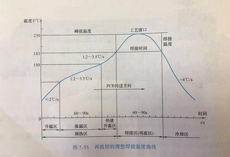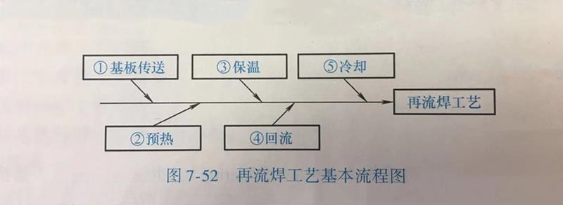 (3) 回流焊工藝的基本過程:一般的,一個完整的回流焊工藝基本流程需要經過基板傳送、預熱、保溫、回流、冷卻等工序。